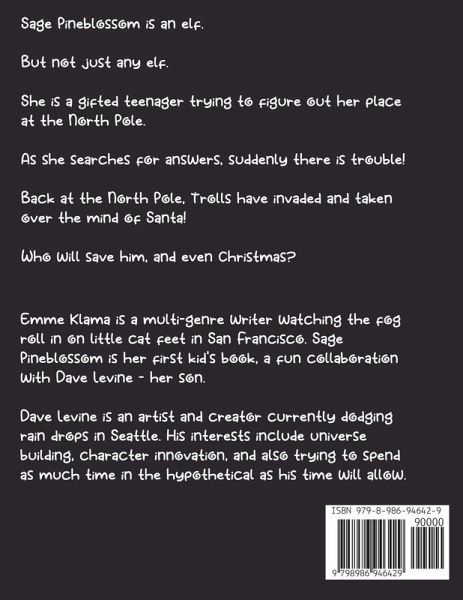 Sage Pineblossom is an elf. But not just any elf. She is a gifted teenager, but can't figure out her place at the North Pole. Running away, she searches for answers. Back at the North Pole, Trolls have infested the buildings and taken over the mind of Santa! Who will save him, and even Christmas?