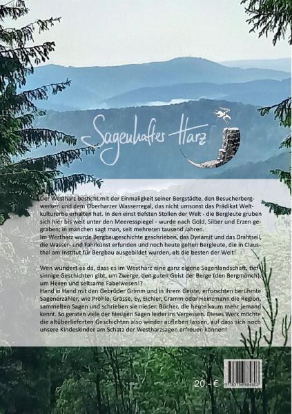 Der Westharz besticht mit der Einmaligkeit seiner Bergstädte, den Besucherbergwerken und dem Oberharzer Wasserregal, das nicht umsonst das Prädikat Weltkulturerbe erhalten hat. In den einst tiefsten Stollen der Welt - die Bergleute gruben sich hier bis weit unter den Meeresspiegel - wurde nach Gold, Silber und Erzen gegraben; in manchen sagt man, seit mehreren tausend Jahren. Im Westharz wurde Bergbaugeschichte geschrieben, das Dynamit und das Drahtseil, die Wasser- und Fahrkunst erfunden und noch heute gelten Bergleute, die in Clausthal am Institut für Bergbau ausgebildet wurden, als die besten der Welt! Wen wundert es da, dass es im Westharz eine ganz eigene Sagenlandschaft, tiefsinnige Geschichten gibt, um Zwerge, den guten Geist der Berge (den Bergmönch), um Hexen und seltsame Fabelwesen!? - Hand in Hand mit den Gebrüder Grimm und in ihrem Geiste, erforschten berühmte Sagenerzähler, wie Pröhle, Grässe, Ey, Eichler, Cramm oder Heinzmann die Region, sammelten Sagen und schrieben sie nieder. Bücher, die heute kaum mehr jemand kennt. So geraten viele der hiesigen Sagen leider ins Vergessen. Dieses Werk möchte die altüberlieferten Geschichten also wieder aufleben lassen, auf dass sich noch unsere Kindeskinder am Schatz der Westharzsagen erfreuen können!