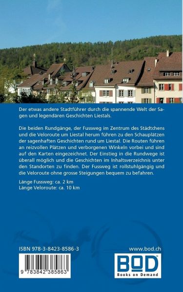 Der etwas andere Stadtführer durch die spannende Welt der Sagen und legendären Geschichten Liestals.Die beiden Rundgänge, der Fussweg im Zentrum des Städtchens und die Veloroute um Liestal herum führen zu den Schauplätzen der sagenhaften Geschichten rund um Liestal. Die Routen führen an reizvollen Plätzen und verborgenen Winkeln vorbei und sind auf den Karten eingezeichnet. Der Einstieg in die Rundwege ist überall möglich und die Geschichten im Inhaltsverzeichnis unter den Standorten zu finden. Der Fussweg ist rollstuhlgängig und die Veloroute ohne grosse Steigungen bequem zu befahren.Länge Fussweg: ca. 2 kmLänge Veloroute: ca. 10 km