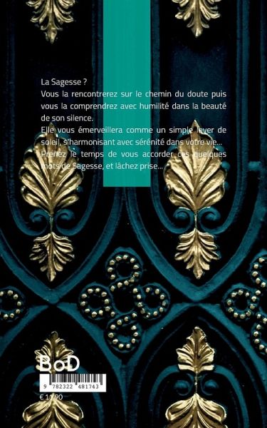 La Sagesse ?Vous la rencontrerez sur le chemin du doute puis vous la comprendrez avec humilité dans la beauté de son silence.Elle vous émerveillera comme un simple lever de soleil, s'harmonisant avec sérénité dans votre vie...Prenez le temps de vous accorder ces quelques mots de Sagesse, et lâchez prise...