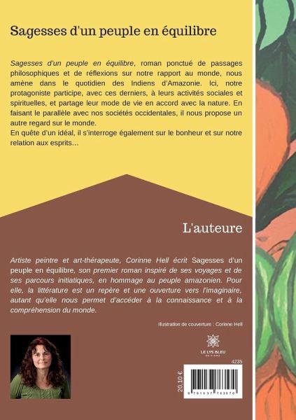 Sagesses d¿un peuple en équilibre, roman ponctué de passages philosophiques et de réflexions sur notre rapport au monde, nous amène dans le quotidien des Indiens d¿Amazonie. Ici, notre protagoniste participe, avec ces derniers, à leurs activités sociales et spirituelles, et partage leur mode de vie en accord avec la nature. En faisant le parallèle avec nos sociétés occidentales, il nous propose un autre regard sur le monde. En quête d¿un idéal, il s¿interroge également sur le bonheur et sur notre relation aux esprits¿