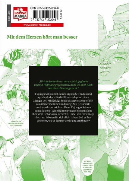 Fujinaga will endlich seinen eignen Stil finden und spricht deshalb für die Bühnenadaption eines Mangas vor. Mit Erfolg! Sein Schauspieltalent erfährt nun immer mehr Bewunderung. Nur Keito wirkt zunehmend verunsichert. Denn Fujinagas Stimme, seine Sprache, seine Bühnenpräsenz bleiben allein ihm, dem Gehörlosen, verwehrt. Dabei will er Funijaga doch am liebsten für sich allein haben. Soll er ihm gestehen, wie er darüber denkt und empfindet?