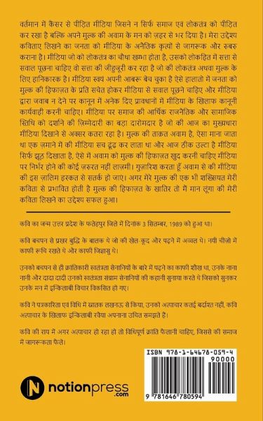 Cancer-affected media has not only spoiled the condition of society and democracy but also poisoned our country's people's minds. My objectives behind writing this poem are to abreast and create awareness to the public on this issue. The media, which was supposed to be the fourth pillar of democracy, whose duty was to ask questions to the government in power, has sold its respect. In such a condition, people--for the sake of the country's concern--need to be aware and question the media. Failing to answer then, they should be brought under the radar of various laws provisioned for the people who are part of that industry. We should plead for the media's prosecution. There are big socio-economic and political responsibilities on the media, which it is running away from. The country's power is its people, not its media. It is believed that, at one time, the media used to present the truth but now it is doing just the opposite. In such conditions, the public needs to protect country on their own; depending on the media is not an option anymore. I request my fellow countrymen to come forward and beware of the murderous media. Even if just one fellow countryman is influenced by my poem, for the love of my country, I will believe the objective behind writing this poem has been successful.