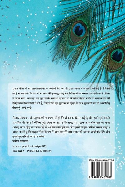 Sahaj gita is a simplified form of Bhagwat Geeta. In this book, shlokas of Geeta ji are illustrated in a very easy Manner. So that everyone can understand the teachings of lord Krishna and implement the same in their lives. Also, this book has been approved by the Devendranath Goswami Ji of Shri Banke Bihariji temple, Vrindavan. By which, this book has received the blessings of Gurus along with the Almighty. Radhe Radhe.