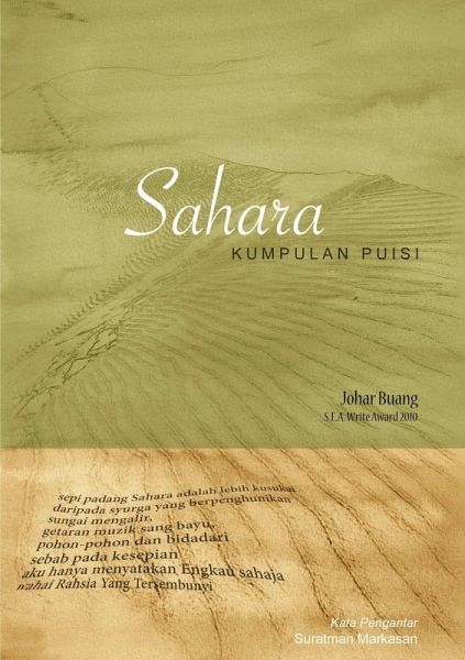 Sahara menghimpunkan 60 buah puisi yang tersirat di maya qalbuku yang ditajallikan sebagai bentuk puisi. Temanya memaparkan suatu pengalaman mistik dalam pencarian untuk menemui-Nya sebagai Kekasih bagi segala kekasih. Pengalaman ini membuat aku begitu sedar merasakan bahwa untuk menemui-Nya bukanlah semudahnya melangkah dengan selangkah-dua tapak di atas muka bumi-Nya, tetapi telah Dia bentangkan sebuah padang pasir yang luas dan tandus, menempuh berbagai cabaran dan ujian penderitaan, sepertimana Dia telah menghimpunkan para tetamu-Nya pada Hari Wukuf di Padang Arafah.