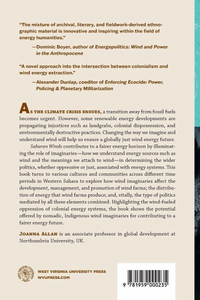 As the climate crisis ensues, a transition away from fossil fuels becomes urgent. However, some renewable energy developments are propagating injustices such as landgrabs, colonial dispossession, and environmentally destructive practices. Changing the way we imagine and understand wind will help us ensure a globally just wind energy future. Saharan Winds contributes to a fairer energy horizon by illuminating the role of imaginaries-how we understand energy sources such as wind and the meanings we attach to wind-in determining the wider politics, whether oppressive or just, associated with energy systems. This book turns to various cultures and communities across different time periods in Western Sahara to explore how wind imaginaries affect the development, management, and promotion of wind farms; the distribution of energy that wind farms produce; and, vitally, the type of politics mediated by all these elements combined. Highlighting the wind-fueled oppression of colonial energy systems, the book shows the potential offered by nomadic, Indigenous wind imaginaries for contributing to a fairer energy future.