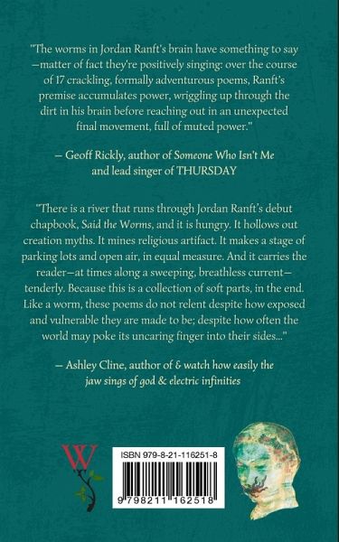 "The worms in Jordan Ranft's brain have something to say-matter of fact they're positively singing: over the course of 17 crackling, formally adventurous poems, Ranft's premise accumulates power, wriggling up through the dirt in his brain before reaching out in an unexpected final movement, full of muted power." - Geoff Rickly, author of SOMEONE WHO ISN'T ME and lead singer of THURSDAY¿