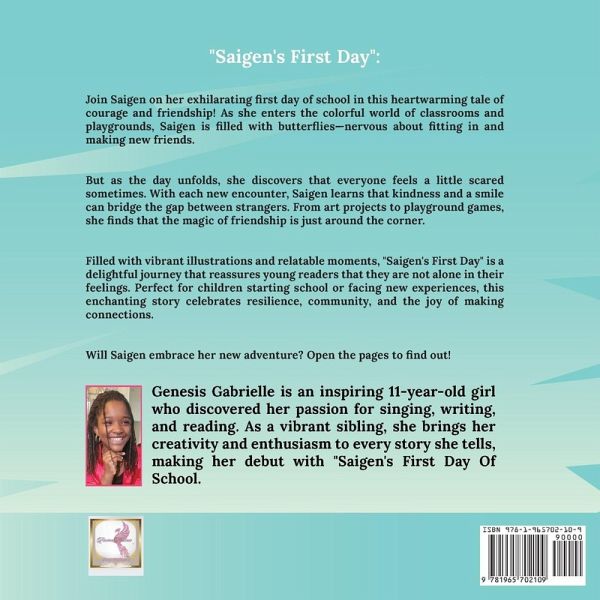 Join Saigen on her exhilarating first day of school in this heartwarming tale of courage and friendship! As she steps into the colorful world of classrooms and playgrounds, Saigen is filled with butterflies-nervous about fitting in and making new friends. But as the day unfolds, she discovers that everyone feels a little scared sometimes. With each new encounter, Saigen learns that kindness and a smile can bridge the gap between strangers. From art projects to playground games, she finds that the magic of friendship is just around the corner. Filled with vibrant illustrations and relatable moments, "Saigen's First Day" is a delightful journey that reassures young readers that they are not alone in their feelings. Perfect for children starting school or facing new experiences, this enchanting story celebrates resilience, community, and the joy of making connections. Will Saigen embrace her new adventure? Open the pages to find out!