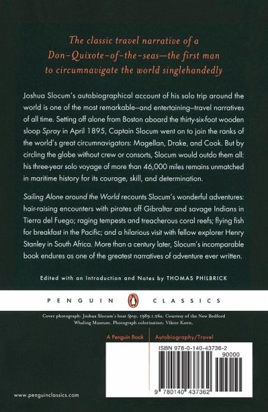 The classic travel narrative of a Don Quixote-of-the-seas - the first man to circumnavigate the world singlehandedly. Joshua Slocum's autobiographical account of his solo trip around the world is one of the most remarkable - and entertaining - travel narratives of all time. Setting off alone from Boston aboard the thirty-six-foot wooden sloop Spray in April 1895, Captain Slocum went on to join the ranks of the world's great circumnavigators - Magellan, Drake, and Cook. But by circling the globe without crew or consorts, Slocum would outdo them all: his three-year solo voyage of more than 46,000 miles remains unmatched in maritime history for its courage, skill, and determination. Sailing Alone around the World recounts Slocum's wonderful adventures: hair-raising encounters with pirates off Gibraltar and savage Indians in Tierra del Fuego; raging tempests and treacherous coral reefs; flying fish for breakfast in the Pacific; and a hilarious visit with fellow explorer Henry Stanley in South Africa. A century later, Slocum's incomparable book endures as one of the greatest narratives of adventure ever written. For more than seventy years, Penguin has been the leading publisher of classic literature in the English-speaking world. With more than 1,700 titles, Penguin Classics represents a global bookshelf of the best works throughout history and across genres and disciplines. Readers trust the series to provide authoritative texts enhanced by introductions and notes by distinguished scholars and contemporary authors, as well as up-to-date translations by award-winning translators.