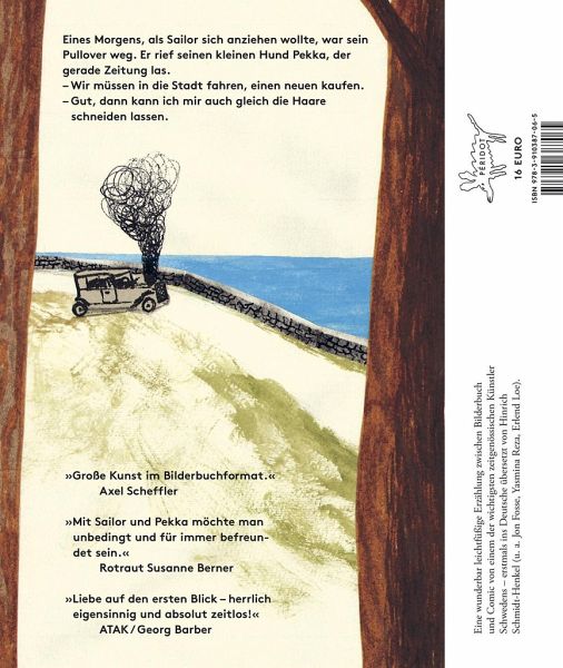 Eines Morgens, als Sailor sich anziehen wollte, war sein Pullover weg. Er rief seinen kleinen Hund Pekka, der gerade Zeitung las. - Wir müssen in die Stadt fahren, einen neuen kaufen. - Gut, dann kann ich mir auch gleich die Haare schneiden lassen. Eine wunderbar leichtfüßige Erzählung zwischen Bilderbuch und Comic von einem der wichtigsten zeitgenössischen Künstler Schwedens - erstmals ins Deutsche übersetzt von Hinrich Schmidt-Henkel (u. a. Jon Fosse, Yasmina Reza, Erlend Loe). 'Große Kunst im Bilderbuchformat.' Axel Scheffler 'Mit Sailor und Pekka möchte man unbedingt und für immer befreundet sein.' Rotraut Susanne Berner 'Liebe auf den ersten Blick - herrlich eigensinnig und absolut zeitlos!' ATAK / Georg Barber