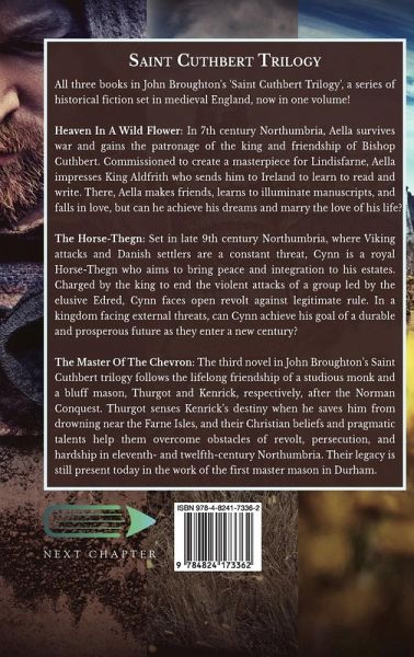 All three books in John Broughton's 'Saint Cuthbert Trilogy', a series of historical fiction set in medieval England, now in one volume! Heaven In A Wild Flower: In 7th century Northumbria, Aella survives war and gains the patronage of the king and friendship of Bishop Cuthbert. Commissioned to create a masterpiece for Lindisfarne, Aella impresses King Aldfrith who sends him to Ireland to learn to read and write. There, Aella makes friends, learns to illuminate manuscripts, and falls in love, but can he achieve his dreams and marry the love of his life? The Horse-Thegn: Set in late 9th century Northumbria, where Viking attacks and Danish settlers are a constant threat, Cynn is a royal Horse-Thegn who aims to bring peace and integration to his estates. Charged by the king to end the violent attacks of a group led by the elusive Edred, Cynn faces open revolt against legitimate rule. In a kingdom facing external threats, can Cynn achieve his goal of a durable and prosperous future as they enter a new century? The Master Of The Chevron: The third novel in John Broughton's Saint Cuthbert trilogy follows the lifelong friendship of a studious monk and a bluff mason, Thurgot and Kenrick, respectively, after the Norman Conquest. Thurgot senses Kenrick's destiny when he saves him from drowning near the Farne Isles, and their Christian beliefs and pragmatic talents help them overcome obstacles of revolt, persecution, and hardship in eleventh- and twelfth-century Northumbria. Their legacy is still present today in the work of the first master mason in Durham.