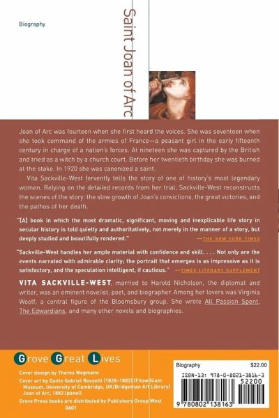 Vita Sackville-West wrote Saint Joan of Arc in 1936 at the age of forty-four, and had, at that point, already been writing for thirty years. At fourteen, Sackville-West published her first book, and at fourteen Joan of Arc first heard the voices. Joan was seventeen when she took command of the armies of France--a peasant girl in the early fifteenth century in charge of a nation's forces. At nineteen she was captured by the British and tried as a witch by a church court. Before her twentieth birthday she was burned at the stake. In 1920 she was canonized by the Roman Catholic Church as a saint. In a clever, brisk voice, Vita Sackville-West tells the triumphant story of a French peasant girl raised in a country torn apart by the Hundred Years' War who rose from poverty to military greatness. With dazzling insight and clarity, Sackville-West breathes new life into Joan of Arc's beautiful and tragic story.
