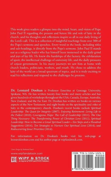 This work gives readers a glimpse into the mind, heart, and vision of Pope John Paul II regarding the present and future life and role of laity in the Church, and his thoughts and reflections inspire us all in our daily living of the Lord's call. This is a collection of insightful teachings from over 300 of the Pope's sermons and speeches. Every word in the book, including titles and sub-headings, is directly from the Pope's sermons. John Paul II stands out as a religious leader who has himself been immersed in the daily grind and joys of lay life. He knew the hardships of the factory, the…mehr