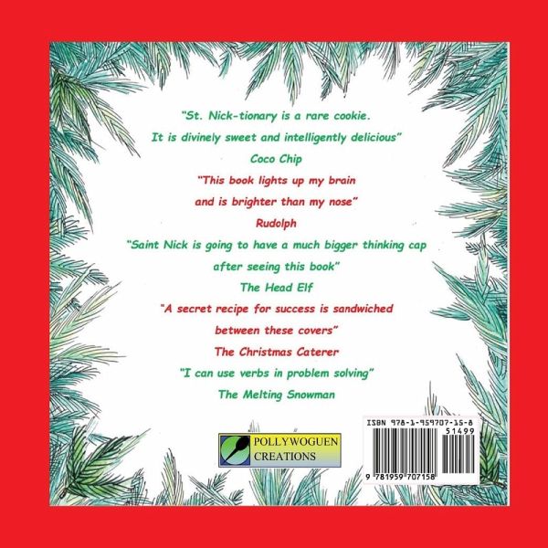 Saint Nick-tionary This book encompasses a visual and creative power to entertain its viewers through using verbal commands to manipulate images of Saint Nick. What you didn't learn about the power of verbs from your Language Arts teacher you will certainly learn in this book from an Art teacher. No matter what age you are, this rare picture book will empower you to be more creative mastering the power of thinking through verbs when creating. "Saint Nick-tionary" is thought provoking and so much fun. It is sophisticated yet child friendly. Tis the season for you to be creative or just maybe every day.