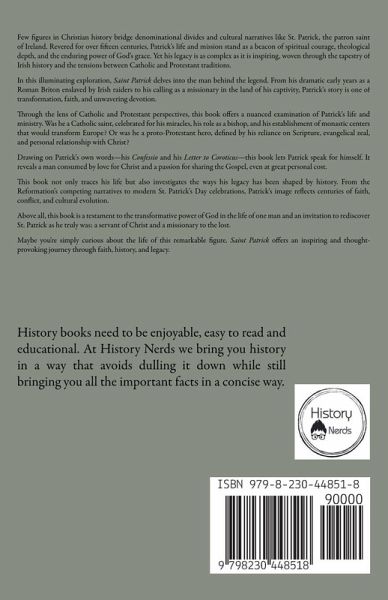 Few figures in Christian history bridge denominational divides and cultural narratives like St. Patrick, the patron saint of Ireland. Revered for over fifteen centuries, Patrick's life and mission stand as a beacon of spiritual courage, theological depth, and the enduring power of God's grace. Yet his legacy is as complex as it is inspiring, woven through the tapestry of Irish history and the tensions between Catholic and Protestant traditions. In this illuminating exploration, Saint Patrick delves into the man behind the legend. From his dramatic early years as a Roman Briton enslaved by Irish raiders to his calling as a missionary in the land of his captivity, Patrick's story is one of transformation, faith, and unwavering devotion. Through the lens of Catholic and Protestant perspectives, this book offers a nuanced examination of Patrick's life and ministry. Was he a Catholic saint, celebrated for his miracles, his role as a bishop, and his establishment of monastic centers that would transform Europe? Or was he a proto-Protestant hero, defined by his reliance on Scripture, evangelical zeal, and personal relationship with Christ? Drawing on Patrick's own words-his Confessio and his Letter to Coroticus-this book lets Patrick speak for himself. It reveals a man consumed by love for Christ and a passion for sharing the Gospel, even at great personal cost. This book not only traces his life but also investigates the ways his legacy has been shaped by history. From the Reformation's competing narratives to modern St. Patrick's Day celebrations, Patrick's image reflects centuries of faith, conflict, and cultural evolution. Above all, this book is a testament to the transformative power of God in the life of one man and an invitation to rediscover St. Patrick as he truly was: a servant of Christ and a missionary to the lost. Maybe you're simply curious about the life of this remarkable figure. Saint Patrick offers an inspiring and thought-provoking journey through faith, history, and legacy.