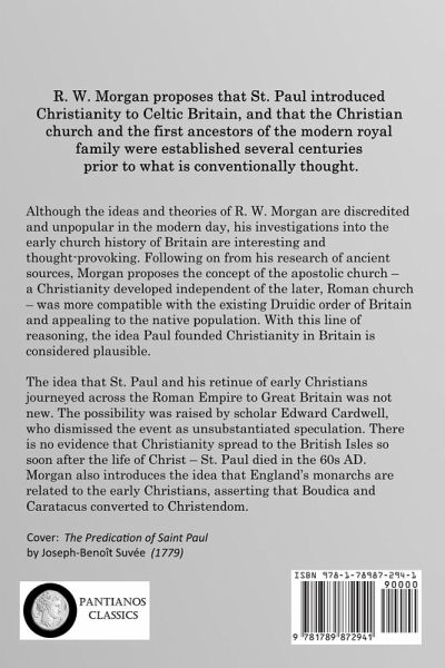 R. W. Morgan proposes that St. Paul introduced Christianity to Celtic Britain, and that the Christian church and the first ancestors of the modern royal family were established several centuries prior to what is conventionally thought. Although the ideas and theories of R. W. Morgan are discredited and unpopular in the modern day, his investigations into the early church history of Britain are interesting and thought-provoking. Following on from his research of ancient sources, Morgan proposes the concept of the apostolic church - a Christianity developed independent of the later, Roman church - was more compatible with the existing Druidic order of Britain and appealing to the native population. With this line of reasoning, the idea Paul founded Christianity in Britain is considered plausible. The idea that St. Paul and his retinue of early Christians journeyed across the Roman Empire to Great Britain was not new. The possibility was raised by scholar Edward Cardwell, who dismissed the event as unsubstantiated speculation. There is no evidence that Christianity spread to the British Isles so soon after the life of Christ - St. Paul died in the 60s AD. Morgan also introduces the idea that England's monarchs are related to the early Christians, asserting that Boudica and Caratacus converted to Christendom.