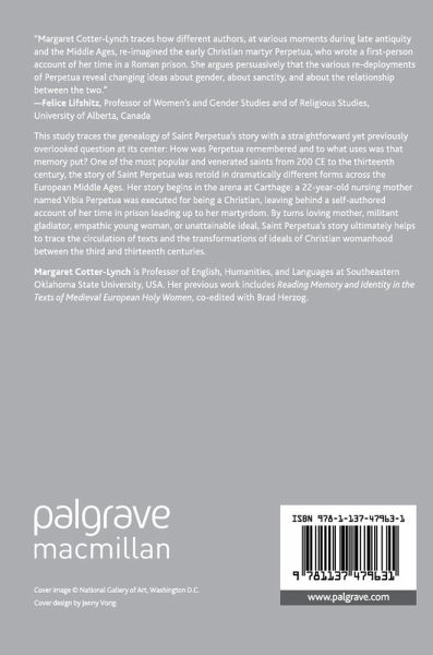 This study traces the genealogy of Saint Perpetua's story with a straightforward yet previously overlooked question at its center: How was Perpetua remembered and to what uses was that memory put? One of the most popular and venerated saints from 200 CE to the thirteenth century, the story of Saint Perpetua was retold in dramatically different forms across the European Middle Ages. Her story begins in the arena at Carthage: a 22-year-old nursing mother named Vibia Perpetua was executed for being a Christian, leaving behind a self-authored account of her time in prison leading up to her martyrdom. By turns loving mother, militant gladiator, empathic young woman, or unattainable ideal, Saint Perpetua's story ultimately helps to trace the circulation of texts and the transformations of ideals of Christian womanhood between the third and thirteenth centuries.