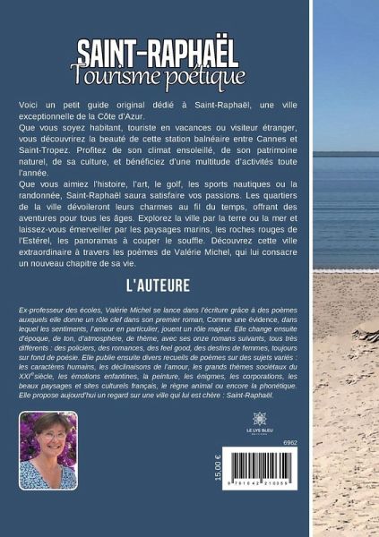 Voici un petit guide original dédié à Saint-Raphaël, une ville exceptionnelle de la Côte d¿Azur. Que vous soyez habitant, touriste en vacances ou visiteur étranger, vous découvrirez la beauté de cette station balnéaire entre Cannes et Saint-Tropez. Profitez de son climat ensoleillé, de son patrimoine naturel, de sa culture, et bénéficiez d¿une multitude d¿activités toute l¿année. Que vous aimiez l¿histoire, l¿art, le golf, les sports nautiques ou la randonnée, Saint-Raphaël saura satisfaire vos passions. Les quartiers de la ville dévoileront leurs charmes au fil du temps, offrant des aventures pour tous les âges. Explorez la ville par la terre ou la mer et laissez-vous émerveiller par les paysages marins, les roches rouges de l¿Estérel, les panoramas à couper le souffle. Découvrez cette ville extraordinaire à travers les poèmes de Valérie Michel, qui lui consacre un nouveau chapitre de sa vie.