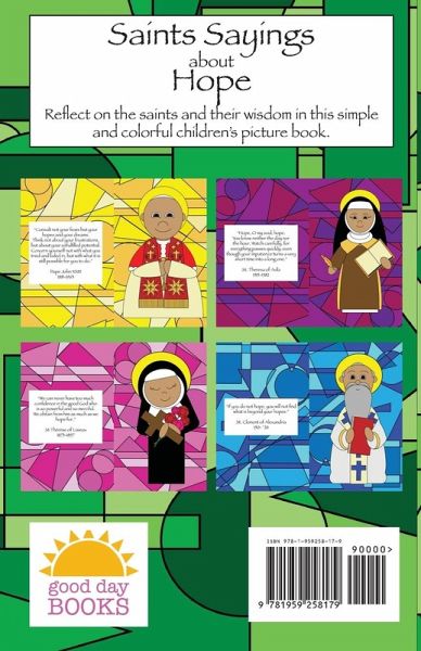 Saint Sayings about Hope features inspiring wisdom from saints and colorful illustrations of St. Francis, St. Therese, St. Padre Pio and more!