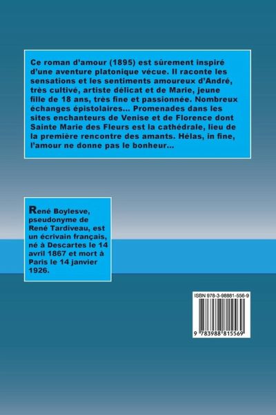Ce roman d'amour (1895) est sûrement inspiré d'une aventure platonique vécue. Il raconte les sensations et les sentiments amoureux d'André, très cultivé, artiste délicat et de Marie, jeune fille de 18 ans, très fine et passionnée. Nombreux échanges épistolaires... Promenades dans les sites enchanteurs de Venise et de Florence dont Sainte Marie des Fleurs est la cathédrale, lieu de la première rencontre des amants. Hélas, in fine, l'amour ne donne pas le bonheur...