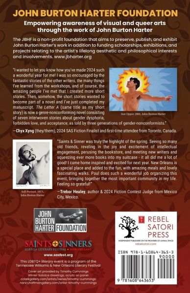 Saints+Sinners Literary Festival is an annual celebration in the heart of the French Quarter of New Orleans each spring. The Festival includes writing workshops, readings, panel discussions, literary walking tours, and special events. We also aim to inspire the written word through our short fiction contest, and our annual Saints+Sinners Emerging Writer Award sponsored by Rob Byrnes. Each year we induct individuals to our Saints+Sinners Hall of Fame. The Hall of Fame is intended to recognize people for their dedication to LGBTQ literature. Selected members have shown their passion for our literary community through various avenues including writing, promotion, publishing, editing, teaching, bookselling, and volunteerism. This collection includes diverse fiction from the 2025 festival, including the winners.
