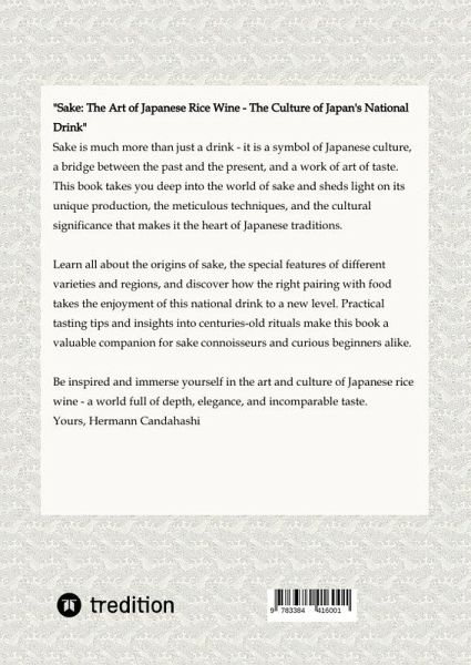 Discover the fascinating world of Japanese rice wine in _"Sake: The Art of Japanese Rice Wine - The Culture of Japan's National Drink"_. This book takes you into the rich history, the deep-rooted traditions and the fine craftsmanship that have shaped sake for centuries. Ideal for connoisseurs and beginners alike, it offers valuable insights into production techniques, regional peculiarities and the fine nuances of the variety of flavors.Learn how sake is enjoyed, which rituals and customs accompany it and what significance it has in Japanese culture and society. Practical tips on tasting and the right pairing with food complement the theoretical knowledge and make this book a comprehensive guide for anyone who wants to experience the art of sake in all its depth.Whether you are a lover of Japanese culture or a connoisseur of fine spirits - this book opens the door to a world full of taste, tradition and elegance. Immerse yourself and be inspired by the art of sake!Your Hermann Candahashi