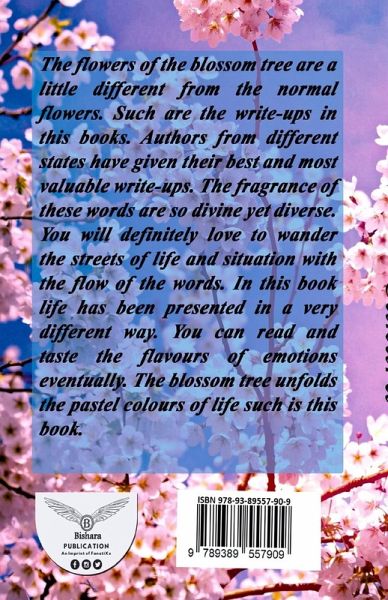The flowers of the blossom tree are a little different from the normal flowers. Such are the write-ups in this books. Authors from different states have given their best and most valuable write-ups. The fragrance of these words are so divine yet diverse. You will definitely love to wander the streets of life and situation with the flow of the words. In this book life has been presented in a very different way. You can read and taste the flavours of emotions eventually. The blossom tree unfolds the pastel colours of life such is this book.