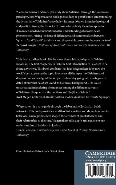 Since the events of 9/11, Salafism in the Middle East has often been perceived as fixed, rigid and even violent, but this assumption overlooks the quietist ideology that characterises many Salafi movements. Through an exploration of Salafism in Jordan, Joas Wagemakers presents the diversity among quietist Salafis on a range of ideological and political issues, particularly their relationship with the state. He expounds a detailed analysis of Salafism as a whole, whilst also showing how and why quietist Salafism in Jordan - through ideological tendencies, foreign developments, internal conflicts, regime involvement, theological challenges and regional turmoil - transformed from an independent movement into a politically domesticated one. Essential for graduate students and academic researchers interested in Middle Eastern politics and Salafism, this major contribution to the study of Salafism debunks stereotypes and offers insight into the development of a trend that still remains a mystery to many.