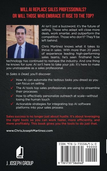 Will AI replace sales professionals? Or will those who embrace it rise to the top? AI isn't just a buzzword-it's the future of selling. Those who adapt will close more deals, work smarter, and outperform the competition. Those who don't? They'll be left behind. Chris Martinez knows what it takes to thrive in sales. With more than 20 years of experience leading high-performing sales teams, he's seen firsthand how technology has continued to reshape the industry. And one thing he knows for sure: AI isn't here to take your job; it's here to make you unstoppable as a sales professional. In Sales is Dead, you'll discover: ¿¿ How AI can automate the tedious tasks you dread so you can focus on selling ¿¿ The AI tools top sales professionals are using to streamline their processes ¿¿ How to effectively personalize outreach at scale, without losing the human touch ¿¿ Actionable strategies for integrating top AI software platforms into your sales process Sales success is no longer just about hustle. It's about leveraging the right tools so you can work faster, more efficiently, and more profitably. This book gives you the tools to do just that.