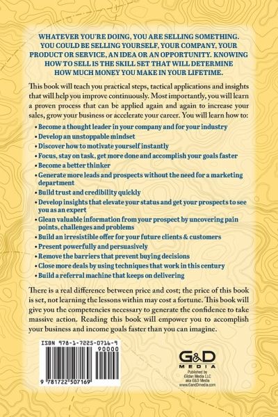 Whatever you're doing, you are selling something. You could be selling yourself, your company, your product or service, an idea or an opportunity. Knowing how to sell is the skill set that will determine how much money you make in your lifetime. This book will teach you practical steps, tactical applications and insights that will help you improve continuously. Most importantly, you will learn a proven process that can be applied again and again to increase your sales, grow your business or accelerate your career. You will learn how to: * Become a thought leader in your company and for your industry * Develop an unstoppable mindset * Discover how to motivate yourself instantly * Become a better thinker * Set big goals and achieve them * Generate more leads and prospects without the need for a marketing department * Build trust and credibility quickly * Develop insights that elevate your status and get your prospects to see you as an expert * Glean valuable information from your prospect by uncovering pain points, challenges and problems * Build an irresistible offer for your future clients and customers * Present powerfully and persuasively * Remove the barriers that prevent buying decisions * Close more deals by using techniques that work in this century * Build a referral machine that keeps on delivering There is a real difference between price and cost; the price of this book is set, not learning the lessons within may cost a fortune. This book will give you the competencies necessary to generate the confidence to take massive action. Reading this book will empower you to accomplish your business and income goals faster than you can imagine.