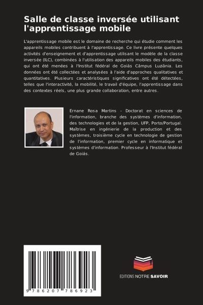 L'apprentissage mobile est le domaine de recherche qui étudie comment les appareils mobiles contribuent à l'apprentissage. Ce livre présente quelques activités d'enseignement et d'apprentissage utilisant le modèle de la classe inversée (ILC), combinées à l'utilisation des appareils mobiles des étudiants, qui ont été menées à l'Institut fédéral de Goiás Câmpus Luziânia. Les données ont été collectées et analysées à l'aide d'approches qualitatives et quantitatives. Plusieurs caractéristiques significatives ont été détectées, telles que l'interactivité, la mobilité, le travail d'équipe, l'apprentissage dans des contextes réels, une plus grande collaboration, entre autres.
