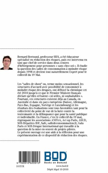 Les "salles de shoot" ou, terme moins sensationnel, les structures d'accueil avec possibilité de consommer à moindre risque des drogues, ont défrayé la chronique cet été 2010 jusqu'à ce que le Premier Ministre français déclare qu'elles n'étaient « ni utiles, ni souhaitables ». Pourtant, ces structures existent déjà au Canada, en Australie et dans six pays européens (Suisse, Allemagne, Pays-Bas, Espagne, Norvège et Luxembourg) et les résultats des évaluations sont tous favorables tant pour la collectivité du point de vue de la lutte contre la toxicomanie et la délinquance que pour la santé publique et individuelle. En France, c'est le collectif du 19 mai, regroupant les associations ANITeA, Act up Paris, ASUD, SOS Hépatites IDF, Safe, Gaïa Paris, salledeconsommation.fr et SOS Drogue International qui travaille à la question de la mise en oeuvre de projets pilotes. Le présent ouvrage est une aide à la réflexion pour une expérimentation de ce dispositif de réduction des risques.