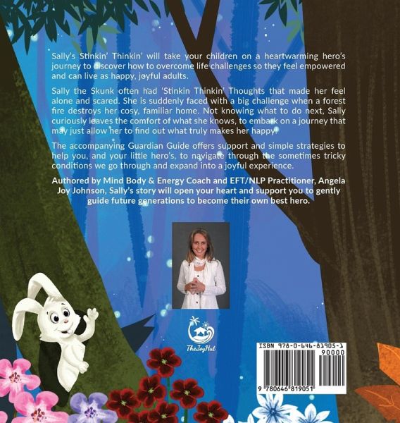 Sally's Stinkin' Thinkin' will take your children on a heartwarming hero's journey to discover how to overcome life challenges, so they feel empowered and can live as happy, joyful adults. Sally the skunk often had 'Stinkin' Thinkin' Thoughts' that made her feel alone and scared. She is suddenly faced with a big challenge when a forest fire destroys her cosy, familiar home. Not knowing what to do next, Sally curiously leaves the comfort of what she knows, to embark on a journey that may just allow her to find out what truly makes her happy! The accompanying Guardian Guide offers support and simple strategies to help you, and your little hero's, to navigate through the sometimes tricky conditions we go through and expand into a joyful experience. Authored by Mind Body & Energy Coach and EFT/NLP Practitioner, Angela Joy Johnson, Sally's story will open your heart and support you to gently guide future generations to become their own best hero.