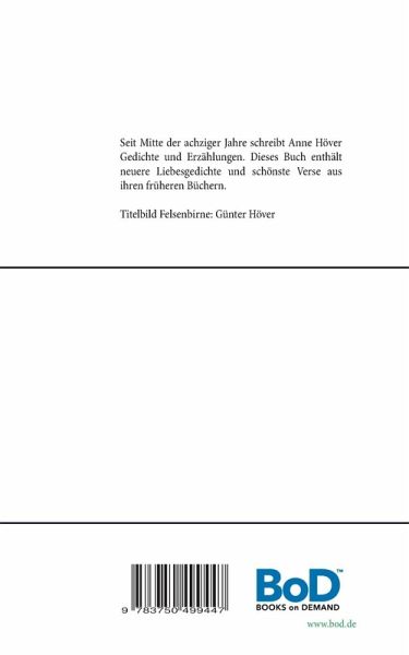 Seit Mitte der achziger Jahre schreibt Anne Höver Gedichte und Erzählungen. Dieses Buch enthält neuere Liebesgedichte und schönste Verse aus ihren früheren Büchern.