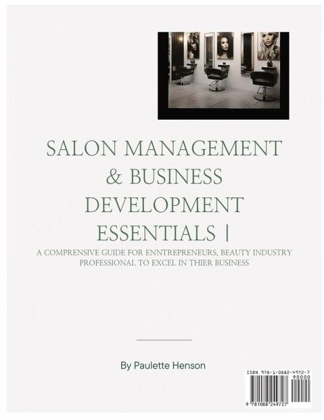 Unlock the secrets to salon success with "Salon Management Business Essentials: A Global Guide," a comprehensive and indispensable resource for aspiring and seasoned salon owners, managers, and beauty professionals worldwide. In an industry where creativity meets commerce, Paulette R. Henson, a seasoned salon management expert, shares a wealth of knowledge and practical insights garnered from years of hands-on experience. This book is your passport to achieving excellence in the art of salon management, regardless of your location or the size of your establishment. "Salon Management Business Essentials" transcends borders, offering universal principles and strategies adaptable to any cultural or regional context. It serves as a trusted mentor, guiding you through the intricacies of running a successful salon business in today's dynamic and competitive beauty industry. Inside this invaluable guide, you'll discover: 1. Business Fundamentals: From crafting a compelling business plan to mastering financial management, this book provides the foundational knowledge necessary to build a resilient and profitable salon business. 2. Operational Excellence: Learn the art of efficient salon operations, including staff management, inventory control, and customer service, to create a seamless and exceptional client experience. 3. Marketing and Branding: Develop a unique brand identity, harness the power of social media, and implement innovative marketing strategies to attract and retain a loyal clientele in a rapidly evolving digital landscape. 4. Legal and Regulatory Insights: Navigate the complex world of salon regulations, licenses, and employment laws to ensure compliance and protect your business interests. 5. Sustainable Growth: Explore strategies for expanding your salon's reach, from opening new locations to introducing innovative services and products that keep your business ahead of the curve. 6. Global Perspectives: Benefit from case studies and best practices from successful salon owners and managers worldwide, gaining valuable insights into what works in different markets. Whether you're an entrepreneur embarking on your first salon venture or a seasoned professional seeking to elevate your salon's performance, "Salon Management Business Essentials" is your trusted companion on the path to success. With a global perspective and a commitment to excellence, this book empowers you to transform your salon into a thriving business that not only meets but exceeds the expectations of your clients, staff, and the industry at large. Join a global community of salon professionals who have already discovered the transformative power of effective salon management. "Salon Management Business Essentials" is your roadmap to building a world-class salon business, and it's available now for aspiring salon leaders everywhere. Order your copy today and start your journey towards salon success.