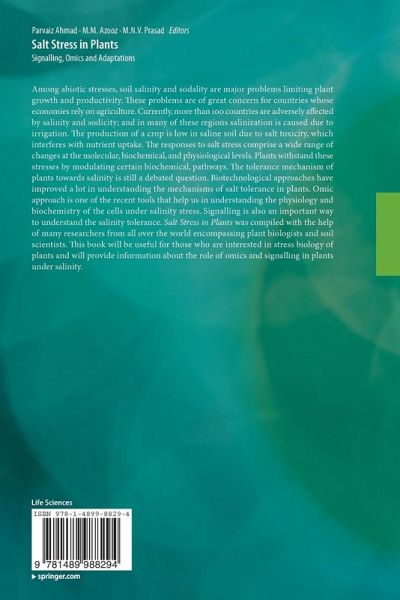 Chapter 1: Recent Advances of Metabolomics to Reveal Plant Response During Salt Stress.- Chapter 2: MicroRNAs and Their Role in Salt Stress Response in Plants.- Chapter 3: Unravelling Salt Stress in Plants Through Proteomics.- Chapter 4: Genetic Approaches to Improve Salinity Tolerance in Plants.- Chapter 5: LEA Proteins in Salt Stress Tolerance.- Chapter 6: Enhancing Plant Productivity Under Salt Stress - Relevance of Poly-omics.- Chapter 7: Salt Stress and MAPK Signaling in Plants.- Chapter 8: ABA: Role in Plant Signaling Under Salt Stress.- Chapter 9: Calcium Signaling and Its Significance in Alleviating Salt Stress in Plants.- Chapter 10: Improving Salt Tolerance in Rice: Looking Beyond the Conventional.- Chapter 11: Approaches to Improving Salt Tolerance in Maize.- Chapter 12: The Role of Phytochromes in Stress Tolerance.- Chapter 13: Role of Arbuscular Mycorrhiza in Amelioration of Salinity.- Chapter 14: Breeding Salinity Tolerance in Citrus Using Rootstocks.- Chapter 15: Effects of Salt Stress on Photosynthesis Under Ambient and Elevated Atmospheric CO2 Concentration.- Chapter 16: Nitrogen-Use-Efficiency (NUE) in Plants Under NaCl Stress.- Chapter 17: The Responses of Salt-Affected Plants to Cadmium.- Chapter 18: Plant Tissue Culture: A Useful Measure for the Screening of Salt Tolerance in Plants.