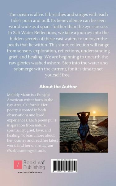 The ocean is alive. It breathes and surges with each tide's push and pull. Its benevolence can be seen world wide as it spans further than the eye can see. In Salt Water Reflections, we take a journey into the hidden secrets of these vast waters to uncover the pearls that lie within. This short collection will range from sensory exploration, reflections, understanding grief, and healing. We are beginning to unearth the raw glories washed ashore. Step into the water and submerge with the current, for it is time to set yourself free.