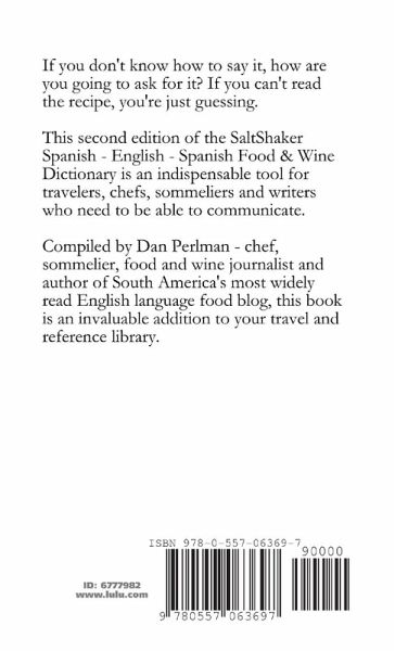 Pocketbook sized and updated Spanish to English and English to Spanish reference dedicated to the world of food and wine - an indispensable addition to the library or backpack of any traveler, chef, sommelier, or writer. Contains over 7,000 entries, including local idiomatic expressions. As with any reference, this is an eternal work in progress.