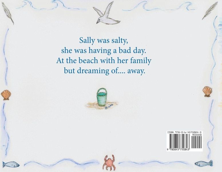 Sally was salty, she was having a bad day. At the beach with her family but dreaming of... away. She stumbled and tripped, carving a path down to the bay. Her sister called out, but Sally shouted, 'I don't want to play!'