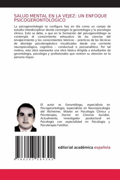 La psicogerontología se configura hoy en día como un campo de estudio interdisciplinar donde convergen la gerontología y la psicología clínica. Esto se debe, a que en la formación del psicogerontólogo se contempla el conocimiento exhaustivo de las ciencias del envejecimiento y los conocimientos teóricos ¿ prácticos de las técnicas de abordaje psicoterapéutico visualizados desde una corriente neuropsicológica, cognitivo ¿ conductual o psicoanalítica. Por tal motivo, esta obra representa una obra básica dirigida a estudiantes de gerontología, psicología y profesionales que centren su atención en la persona mayor.