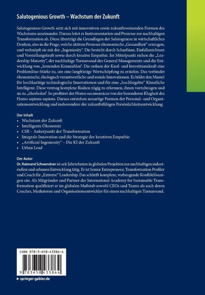 Salutogenious Growth setzt sich mit innovativen sowie zukunftsweisenden Formen des Wachstums auseinander. Daraus leitet es Instrumentarien und Prozesse zur nachhaltigen Transformation ab. Diese überträgt die Grundlagen der Salutogenese in wirtschaftliches Denken, also in die Frage, welche aktiven Prozesse ökonomische "Gesundheit" erzeugen, und verknüpft sie mit der "Ingeniosity". Die besticht durch Scharfsinn, Einfallsreichtum und Vorstellungskraft sowie durch kreative Empathie. Im Mittelpunkt stehen die "Leadership Maturity", der nachhaltige Turnaround des General Managements und die Entwicklung von "lernenden Kennzahlen". Die ordnen der Kauf- und Investitionskraft eine Problemlöse-Stärke zu, um eine langfristige Wertschöpfung zu erzielen. Das verbindet ökonomische, ökologisch verantwortliche und soziale Innovationen. Es bildet den Mantel für hochkarätige technologische Innovationen und für eine "hochbegabte" Künstliche Intelligenz. Diese vermag komplexe Risiken zügig zu erkennen,ihnen vorzubeugen und sie zu "überholen". So profitiert der Homo oeconomicus von der besonderen Klugheit des Homo sapiens-sapiens. Daraus entstehen neuartige Formen der Personal- und Organisationsentwicklung und insbesondere der zukunftsfähigen Persönlichkeitsentwicklung.