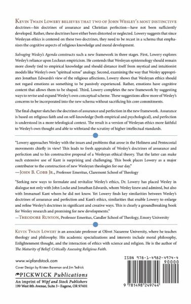 Kevin Twain Lowery believes that two of John Wesley's most distinctive doctrines--his doctrines of assurance and Christian perfection--have not been sufficiently developed. Rather, these doctrines have either been distorted or neglected. Lowery suggests that since Wesleyan ethics is centered on these two doctrines, they need to be recast in a schema that emphasizes the cognitive aspects of religious knowledge and moral development. Salvaging Wesley's Agenda constructs such a new framework in three stages. First, Lowery explores Wesley's reliance upon Lockean empiricism. He contends that Wesleyan epistemology should remain more closely tied to empirical knowledge and should distance itself from mystical and intuitionist models like Wesley's own ""spiritual sense"" analogy. Second, examining the way that Wesley appropriates Jonathan Edwards's view of the religious affections, Lowery shows that Wesleyan ethics should not regard emotions as something to be passively experienced. Rather, emotions have cognitive content that allows them to be shaped. Third, Lowery completes the new framework by suggesting ways to revise and expand Wesley's own conceptual scheme. These suggestions allow more of Wesley's concerns to be incorporated into the new schema without sacrificing his core commitments. The final chapter sketches the doctrines of assurance and perfection in the new framework. Assurance is based on religious faith and on self-knowledge (both empirical and psychological), and perfection is understood in a more teleological context. The result is a version of Wesleyan ethics more faithful to Wesley's own thought and able to withstand the scrutiny of higher intellectual standards.