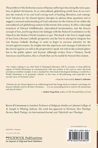 The problem of the barbarous excess of human suffering is becoming the main question of global Christianity. In an intercultural, globalizing world, how do we envision the wounds of sin and God's saving work of healing, liberation, and redemption? Salvation for the Sinned-Against attempts to address these questions and to suggest a renewed understanding of God's salvation for the victims of sin within the intercultural and globalizing context of the twenty-first century. It offers a thorough treatment of Edward Schillebeeckx, intercultural hermeneutics, and the Korean concept of han, and brings them into dialogue with the Pastoral Constitution on the Church in the Modern World Gaudium et spes. This book is the first in-depth study of han from a Roman Catholic perspective and the first to attempt to integrate han into Roman Catholic theology in order to begin to envision salvation for the sinned-against creature. Its insights into the experience and message of salvation for the sinned-against (as well as the perpetrators) speak not only to the ecclesial sphere but to the public sphere and beyond. Although written from a Western, North American social location, this is a book that can be useful far beyond this context.