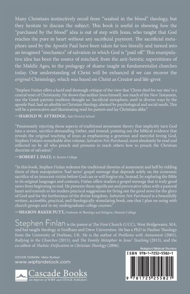 Many ministers and faithful Christians instinctively recoil from "washed in the blood" theology, but they hesitate to discuss the subject. This book, by one of the world's leading authorities on atonement doctrine, shows how the "purchased by the blood" idea is out of step with the teachings of Jesus, who said that God reaches the pure in heart without any sacrificial payment. The successors of Paul took the Apostle Paul's sacrificial metaphors far too literally and turned them into an imagined "mechanics" of salvation in which God is "paid off." Over the centuries, this manipulative idea has been the source of confusion and mischief, from the anti-Semitic superstitions of the Middle Ages, to the pedagogy of shame taught in many fundamentalist churches today. Our understanding of Christ will be enhanced if we can recover the original apostolic Christology, which was based on Christ as Creator and life-giver.