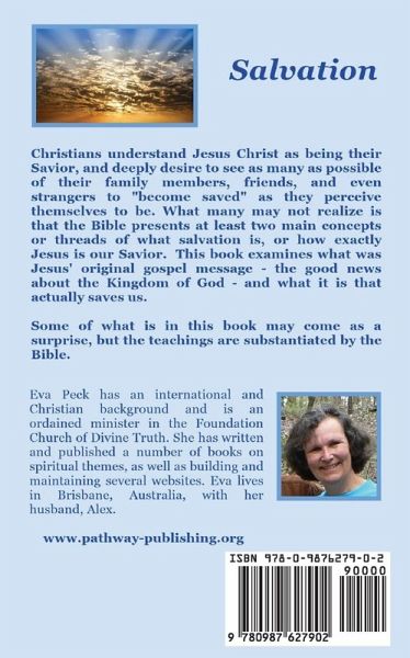 This small book explores what the Bible says about spiritual salvation and how exactly is Jesus the Savior of humanity. Committed Christians often ponder the question of what is salvation? They understand Jesus Christ as being their Savior, and deeply desire to see as many as possible of their family members, friends, and even strangers to "become saved" as they perceive themselves to be. What many may not realize is that the Bible presents at least two main concepts or threads of what salvation is, or how Jesus saves. The book examines what was Jesus' original gospel message - the good news about the Kingdom of God - and what it is that actually saves us. Some of what is in this book may come as a surprise, but the teachings are substantiated by the Bible. It is also important to realize that the New Testament wasn't finalized until the 4th century in the time of the Emperor Constantine, by which time the church was nationalized and many of Jesus' original teachings had been lost. Orthodox doctrines were established by church councils over decades in response to the numerous groups with differing ideas that had sprung up. Often there were bitter disputes even among those present at the council meetings. The scriptures we have today therefore reflect this historical development. Despite its imperfections, however, the Bible remains a valuable spiritual guide for life. Readers are encouraged to consider the information presented in this book with open minds and hearts, and decide for themselves whether or not it resonates with them.