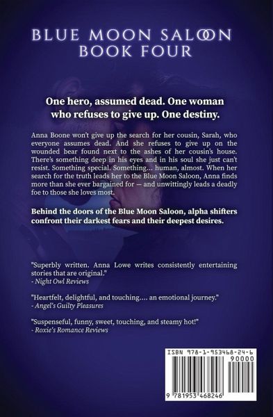 One hero, assumed dead. One woman who refuses to give up. One destiny. Anna Boone won't give up the search for her cousin, Sarah, who everyone assumes dead. And she refuses to give up on the wounded bear found next to the ashes of her cousin's house. There's something deep in his eyes and in his soul she just can't resist. Something special. Something...human, almost. When her search for the truth leads her to the Blue Moon Saloon, Anna finds more than she ever bargained for - and unwittingly leads a deadly foe to those she loves most. Behind the doors of the Blue Moon Saloon, alpha shifters confront their darkest fears and their deepest desires. This book is a complete standalone story - no cliffhangers! * A paranormal romance with adult content. The perfect read for fans of strong heroines, alpha heroes, werewolves, werebears, and shapeshifters, red-hot cowboys, romantic westerns, paranormal suspense, action-adventure romance, and fantasy romance! *