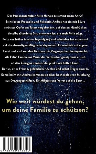 Der Personenschützer Felix Horvat bekommt einen Anruf: Seine beste Freundin und Polizistin Andrea hat ein mit Säure verätztes Opfer am Tatort vorgefunden, auf dessen Handrücken dieselbe tätowierte 5 zu erkennen ist, die auch Felix trägt. Felix war früher in einer Jugendgang und scheinbar hat es jemand auf die ehemaligen Mitglieder abgesehen. Er ermittelt auf eigene Faust und wird von den Geistern seiner Vergangenheit heimgesucht. Als Felix' Familie ins Visier der Verbrecher gerät, muss er sich an den Einzigen wenden, der jetzt noch helfen kann: Darius, alter Freund, gefährlicher Junkie und selbst Träger einer 5. Gemeinsam mit Andrea kommen sie einer hochexplosiven Mischung aus Drogengeschäften, Ex-Militärs und Verrat auf die Spur ...