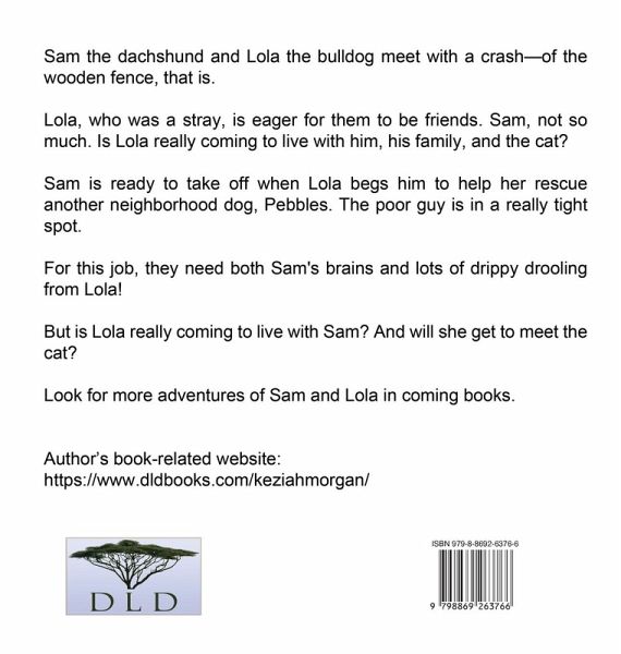 Sam the dachshund and Lola the bulldog meet with a crash-of the wooden fence, that is. Lola, who was a stray, is eager for them to be friends. Sam, not so much. Is Lola really coming to live with him, his family, and the cat? Sam is ready to take off when Lola begs him to help her rescue another neighborhood dog, Pebbles. The poor guy is in a really tight spot. For this job, they need both Sam's brains and lots of drippy drooling from Lola! But is Lola really coming to live with Sam? And will she get to meet the cat? Look for more adventures of Sam and Lola in coming books.