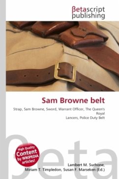 High Quality Content by WIKIPEDIA articles! The Sam Browne belt is a wide belt, usually leather, which is supported by a strap going diagonally over the right shoulder. It is most often seen as part of a military or police uniform. Sam Browne was a British army officer serving in India in the 19th century. In those days officers always carried a sword into battle. It hung from a little strap on the waistbelt, called a 'frog'. However, the scabbard tended to slide around a lot when they charged the enemy, meaning that it had to be steadied with the left hand.