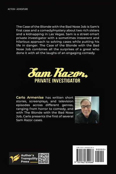 The Case of the Blonde with the Bad Nose Job is Sam's first case and a comedy/mystery about two rich sisters and a kidnapping in Las Vegas. Sam is a street-smart private investigator with a sometimes irreverent and hilarious approach to solving cases while putting his life in danger. The Case of the Blonde with the Bad Nose Job combines all the surprises of a great who done it with all the laughs of an engaging comedy.
